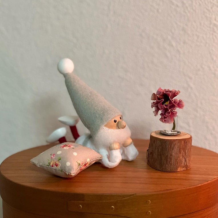 ニッセドールサイズのミニフラワーが素敵なショット✨お花を見つめて何を想っているのでしょう・・🌸そばにあるミニクッションも、合わせてお花柄になっていて素敵です✨
