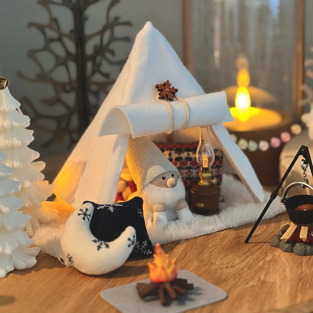 かわいいテントに、クッションなどとてもノルディカニッセとの世界観にピッタリのコーディネートですね✨明かりを落として、ノルディカニッセが見ているのは星空かな、、🌟
