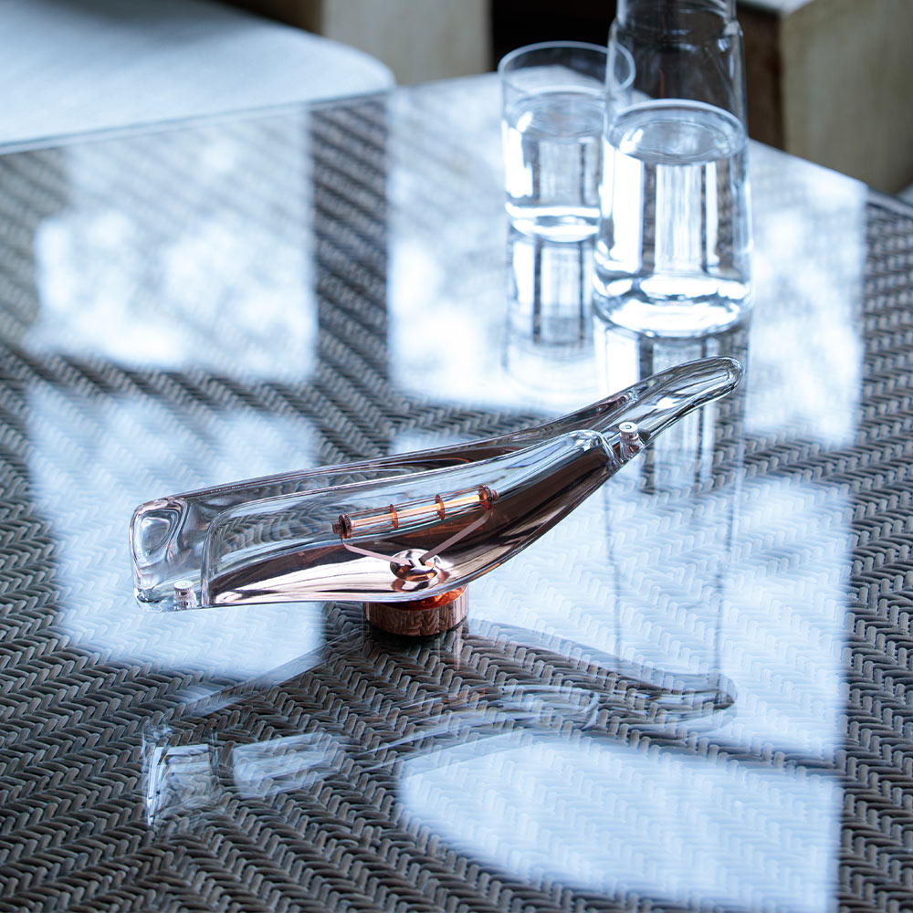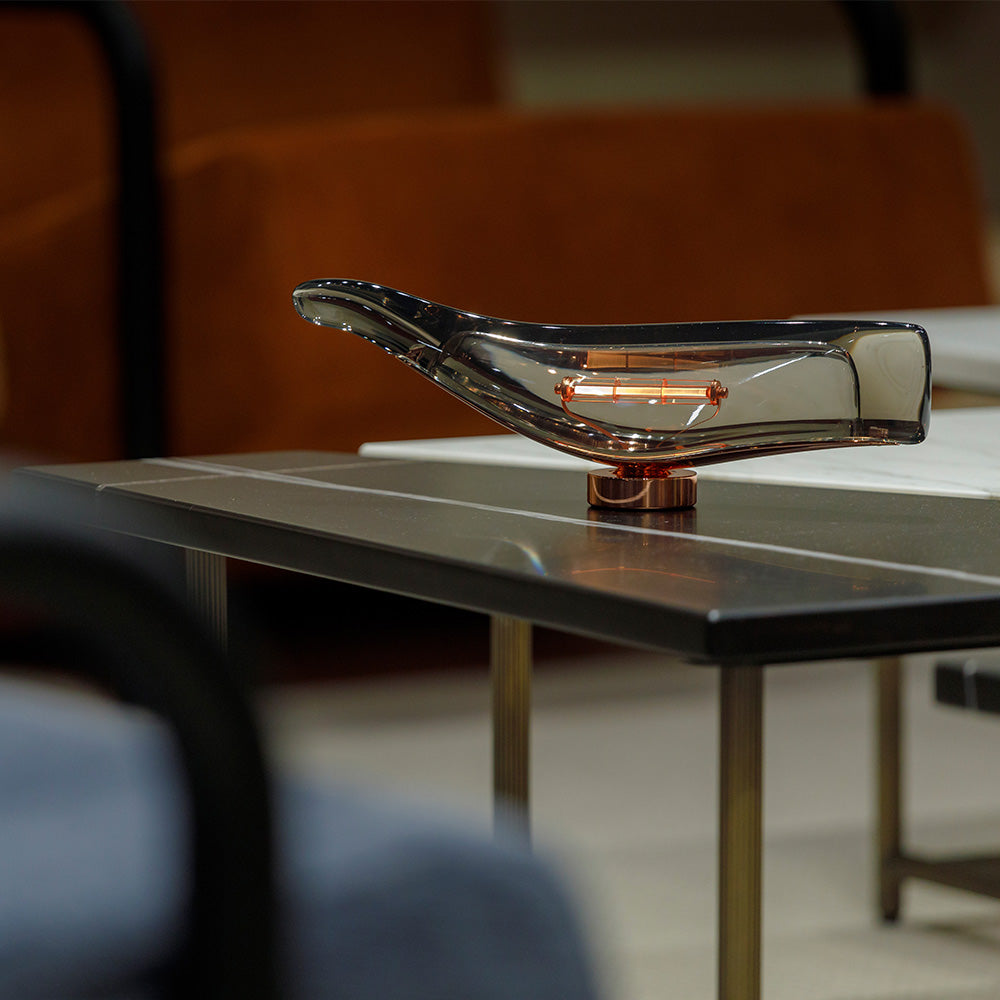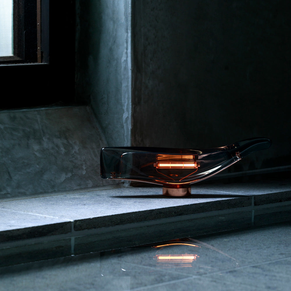 デザイナーの小関隆一氏が、深海を泳ぐ「マッコウクジラ」からインスピレーションを受けてデザインしたコードレスランプです。