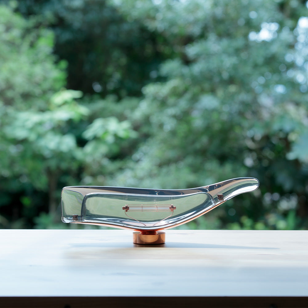 純度の高い透き通ったアクリルシェードの中に浮かび上がるのは、クジラの骨格を思わせる独創的なLEDユニット。