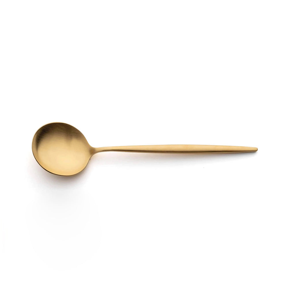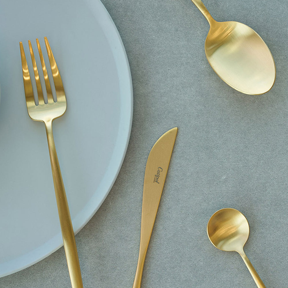 光沢を抑えたマットゴールドは、どんなテイストの食器にも自然に馴染みます。