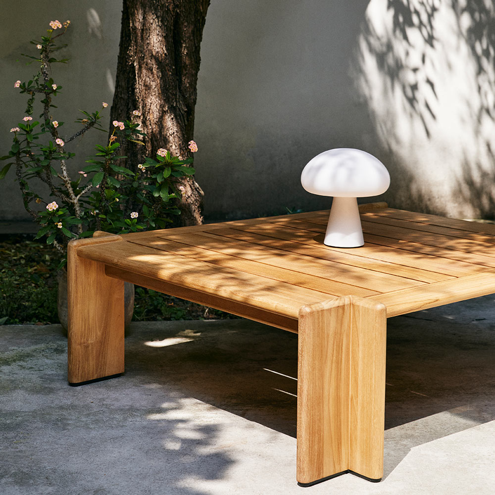 遊び心溢れるキノコのようなシェイプは、1970年代アメリカ西海岸のポップカルチャーやスペースエイジを反映したデザイン。フロストガラスのシェードとボディがシームレスにつながるランプは、柔らかな光を放ち、トータルルック照明の美しさを際立たせています。