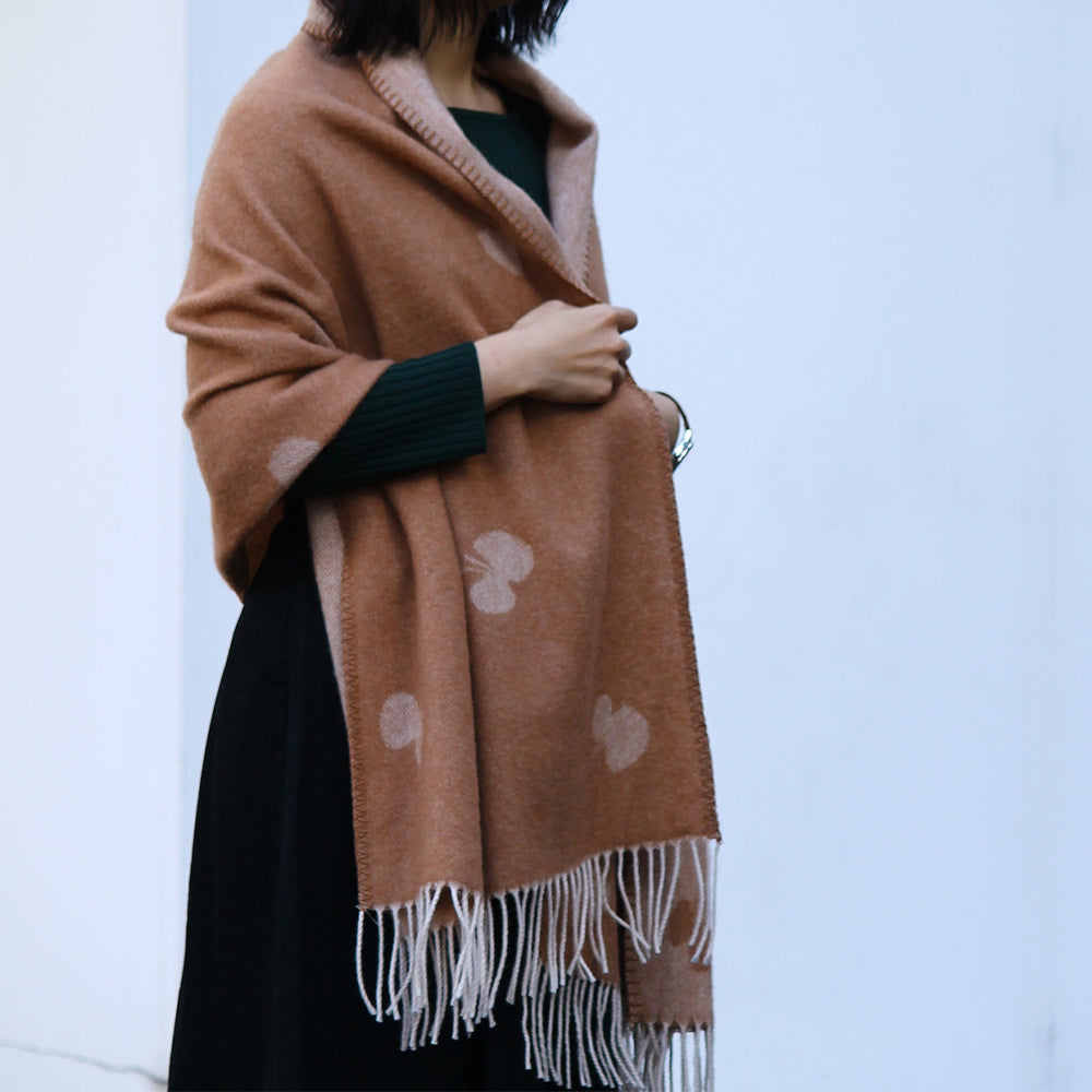 室内ではブランケットとして、外ではショールやマフラーとして活躍します。