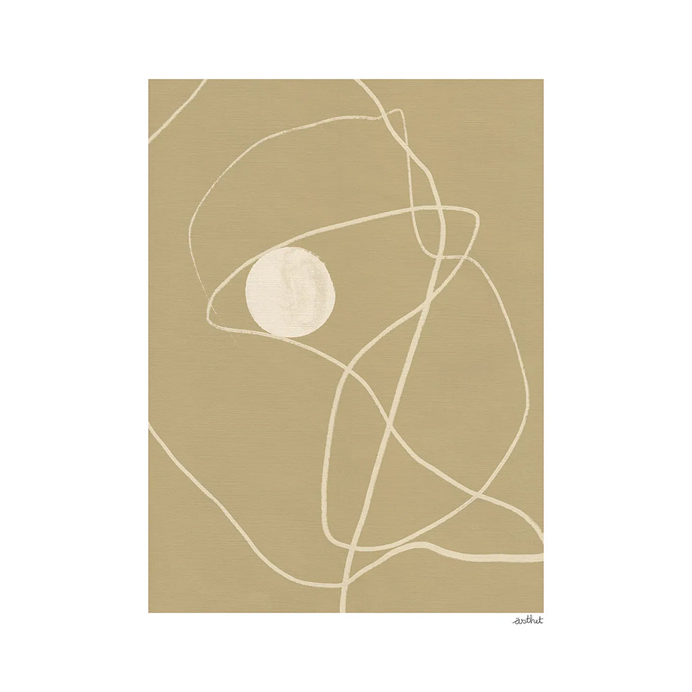 その名の通り「小さな真珠」をモチーフにしたこの作品は、温かみのあるサンドカラーの背景に、真珠のように輝く円と、そこから流れ出すかのような繊細なラインが描かれています。