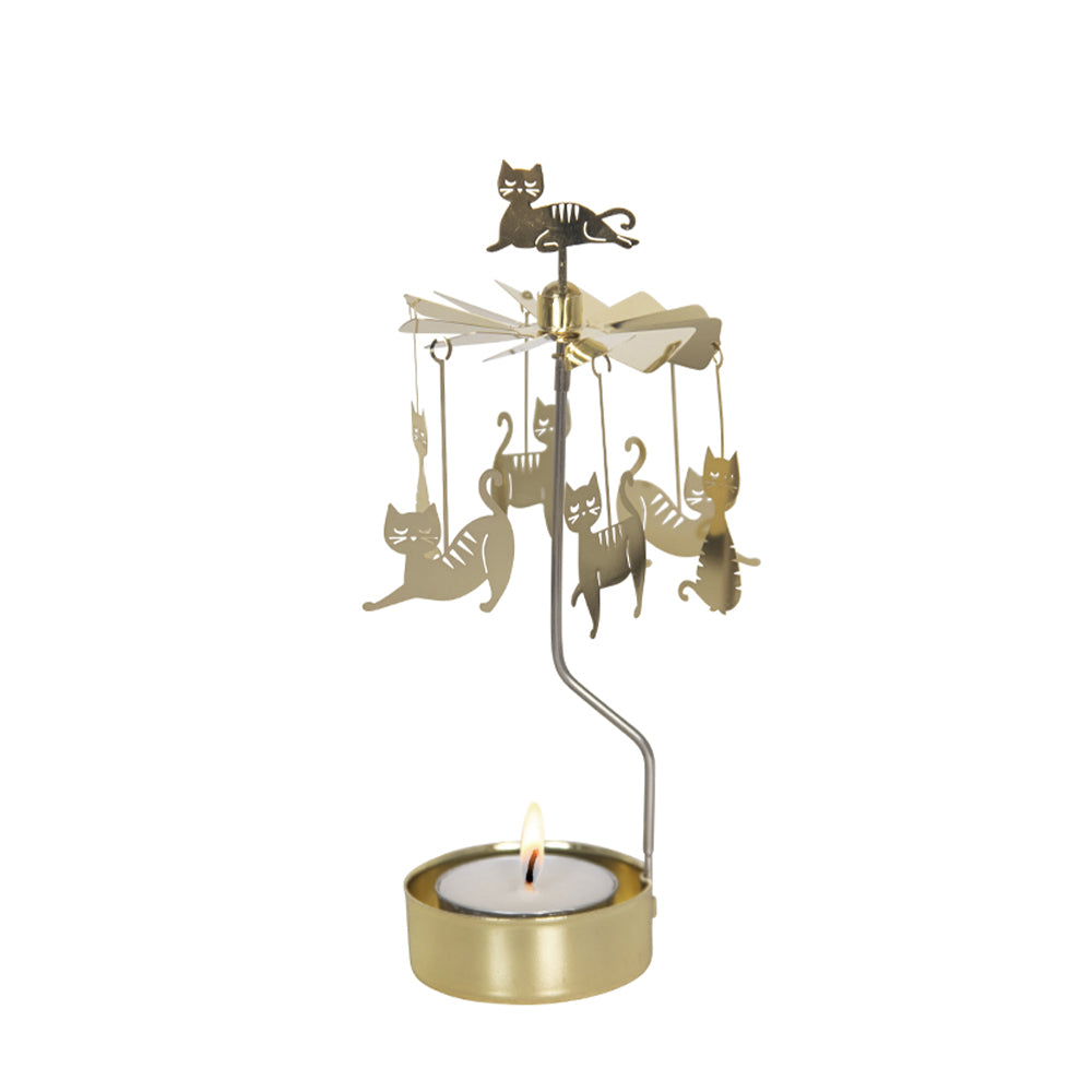 キャンドルの灯りを受けて、ねこちゃんたちがきらきらと光りながら回る様子は、まるで魔法のよう。