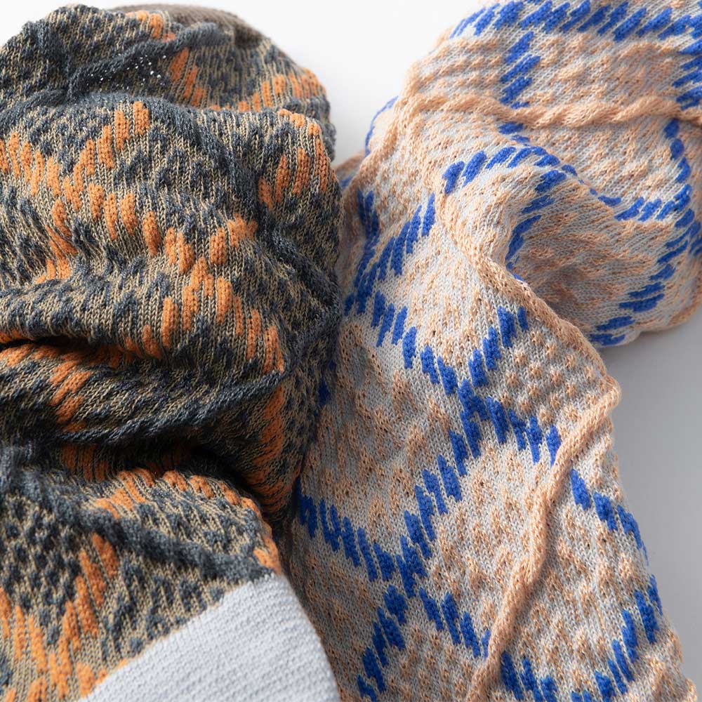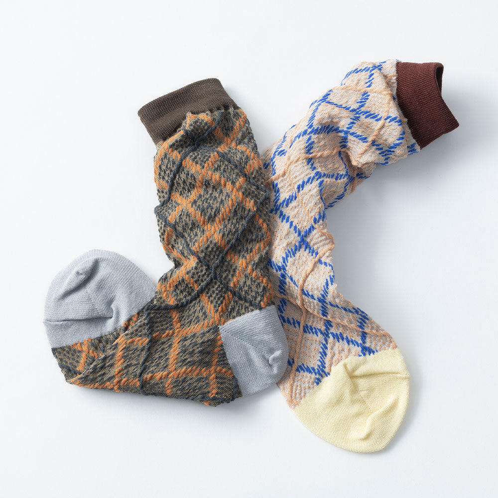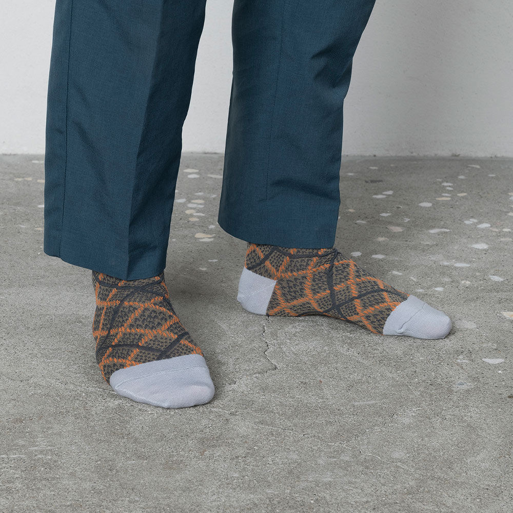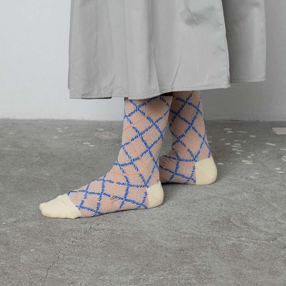 ニットの生地開発からテキスタイルデザインまでの工程を、一貫して国内生産にこだわるTRICOTE(トリコテ)より、アーガイル柄の凹凸感が特徴のソックスが入荷しました。