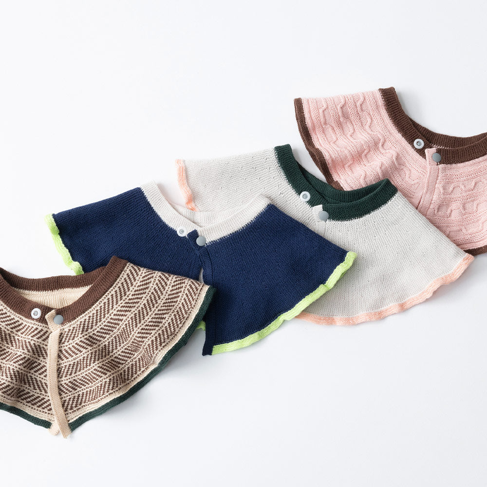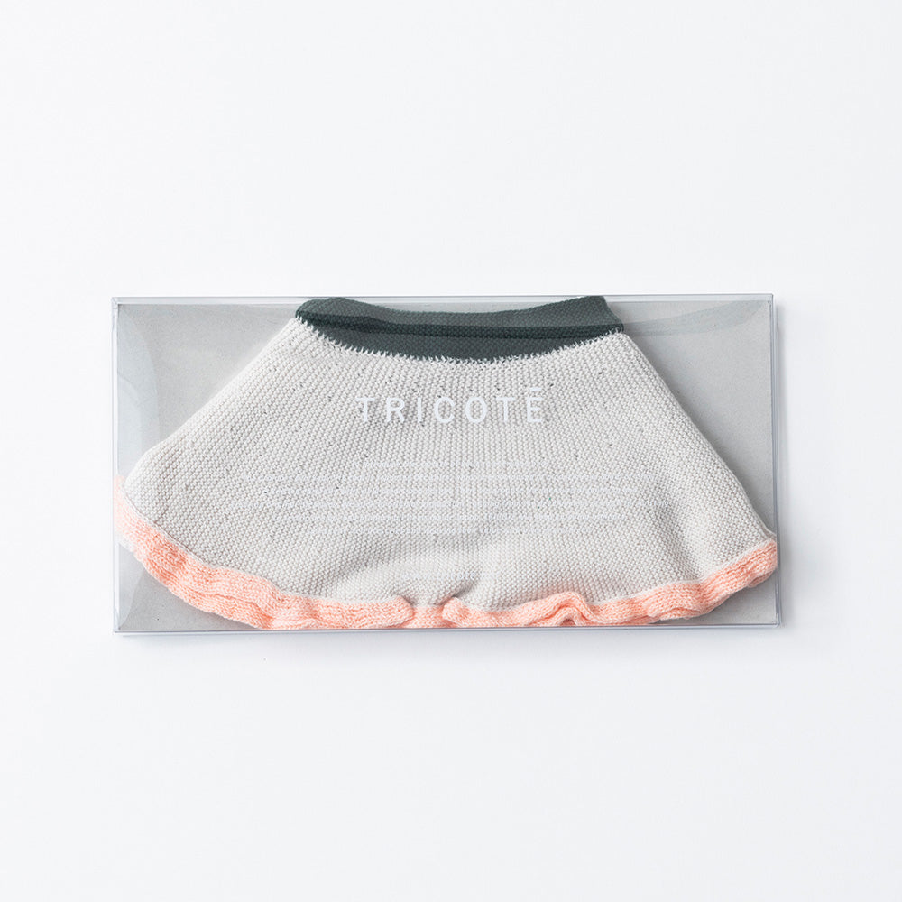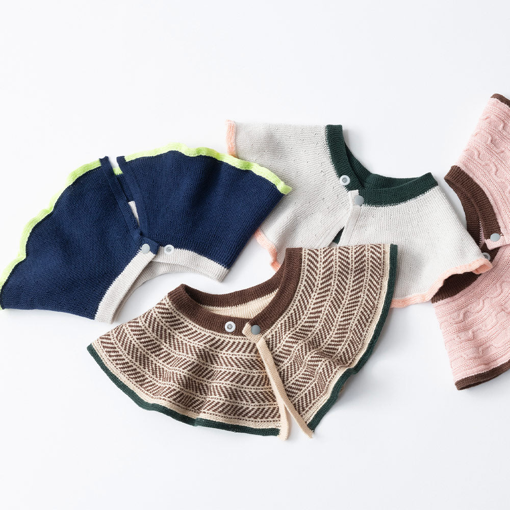 ニットの生地開発からテキスタイルデザインまでの工程を、国内生産にこだわるTRICOTE(トリコテ)より、赤ちゃんのお洋服に欠かせない、愛らしいスタイ(よだれかけ)が届きました。