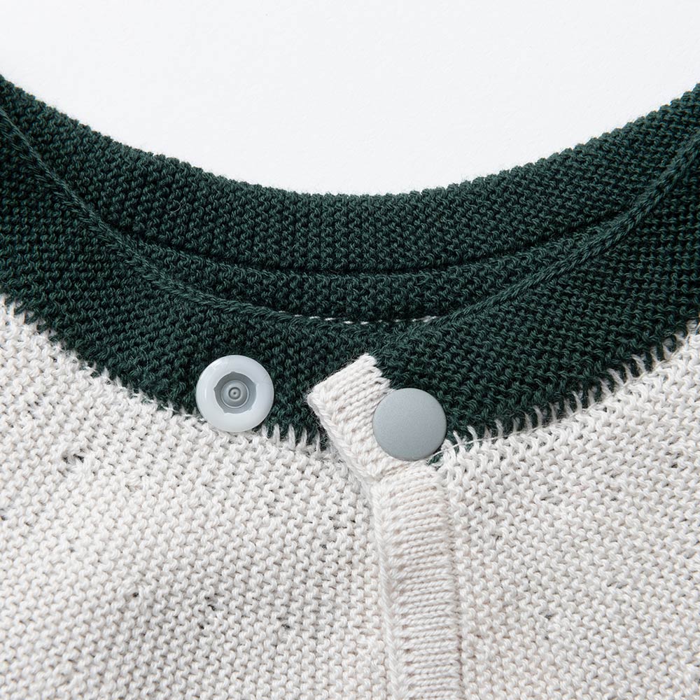 こちらのベーシックスタイは裏地仕立てのユニークなデザインで、シンプルなベビー服にお洒落なアクセントを加えてくれます。
