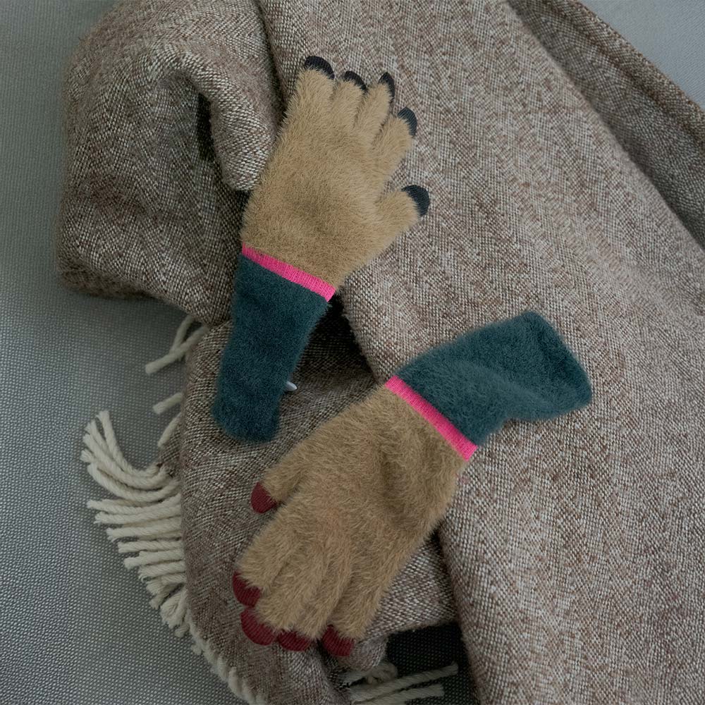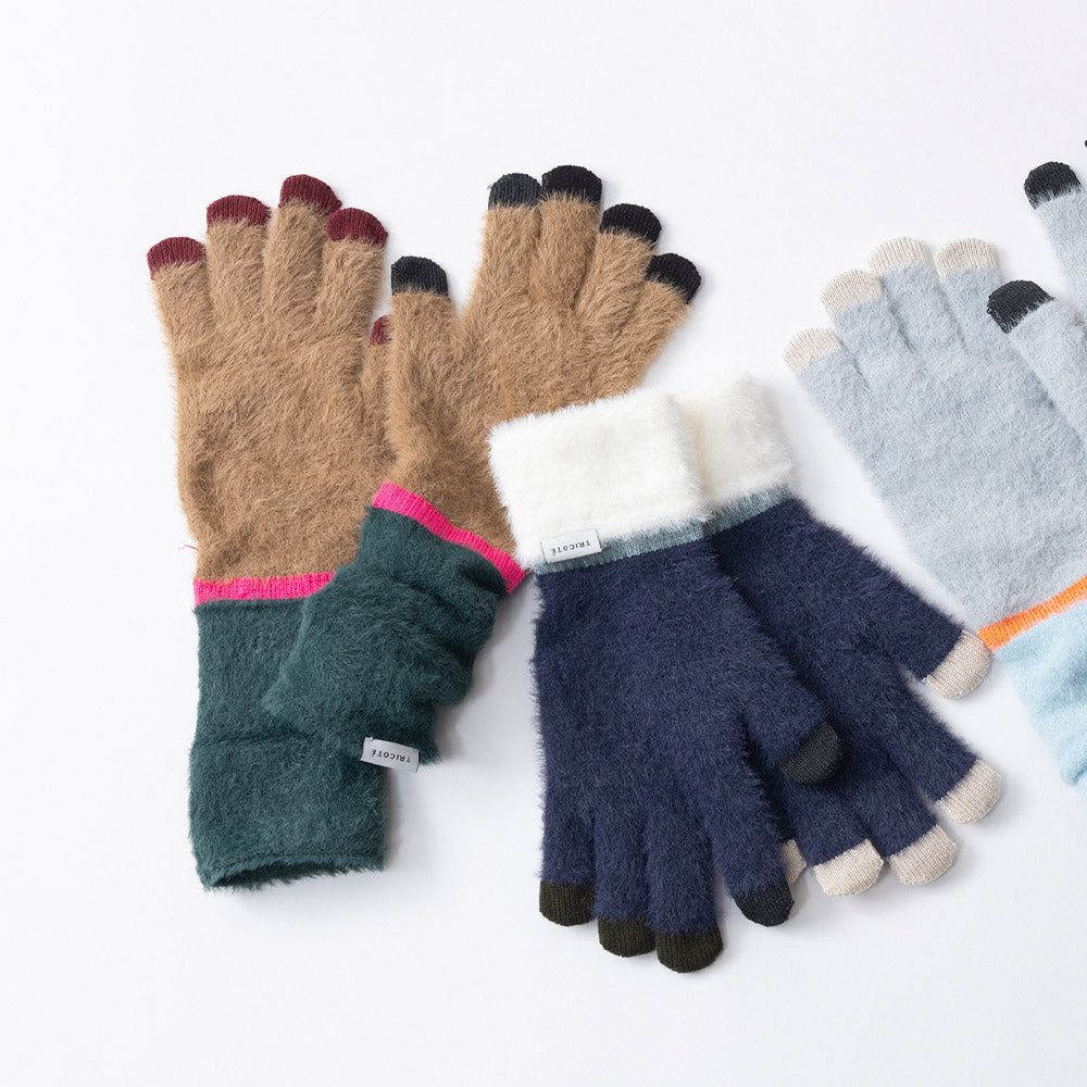 ニットの生地開発からテキスタイルデザインまでの工程を、一貫して国内生産にこだわるTRICOTE(トリコテ)より、ふわふわのシャギー手袋が入荷しました。
